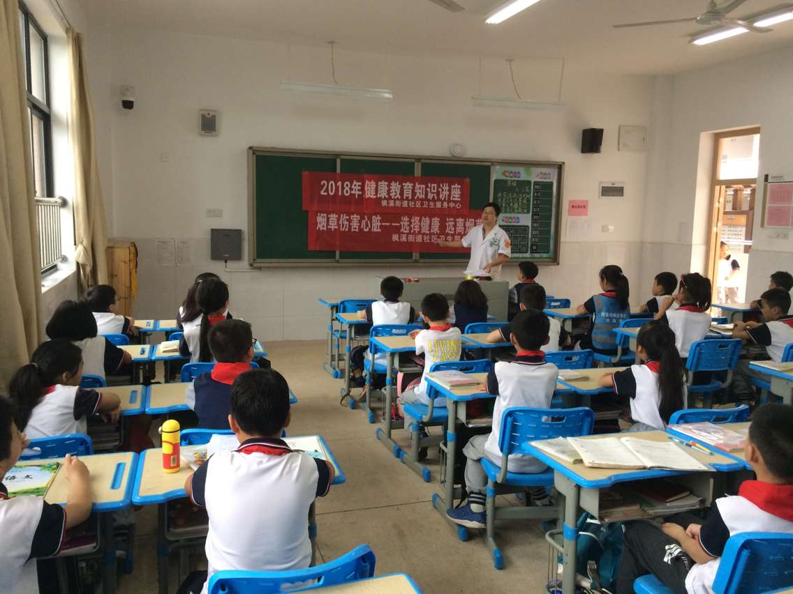 为进一步提高学生对烟草危害的认识,促使学生养成不吸烟的好习惯,营造一个健康、无烟的校园环境,区卫计执法局卫生监督员与枫溪社区卫生服务中心工作人员于5月31日“世界无烟日”在枫溪学校开展了烟草危害健康的知识讲座和宣传活动。